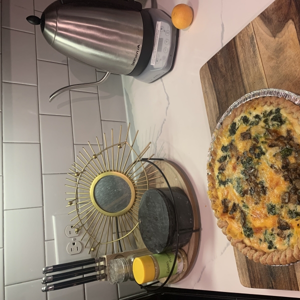 Very tasty and fluffy quiche. Easy to prepare. You'll love it. The spinach can be substituted for any fresh or frozen vegetable.