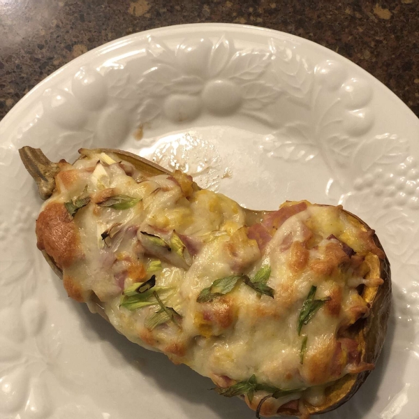 Add egg, Dijon, salt, and pepper to squash; mix and mash with a spoon until smooth, or leave it a bit chunky if desired. Stir in green onions, ham, and diced Gruyère; mix until combined.