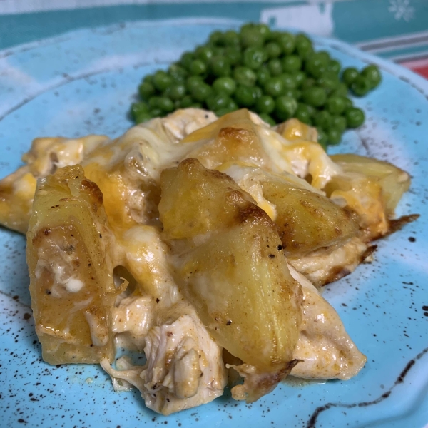 Fold chicken mixture into the potatoes in the casserole until well combined. Sprinkle with remaining 1/2 cup shredded cheese.