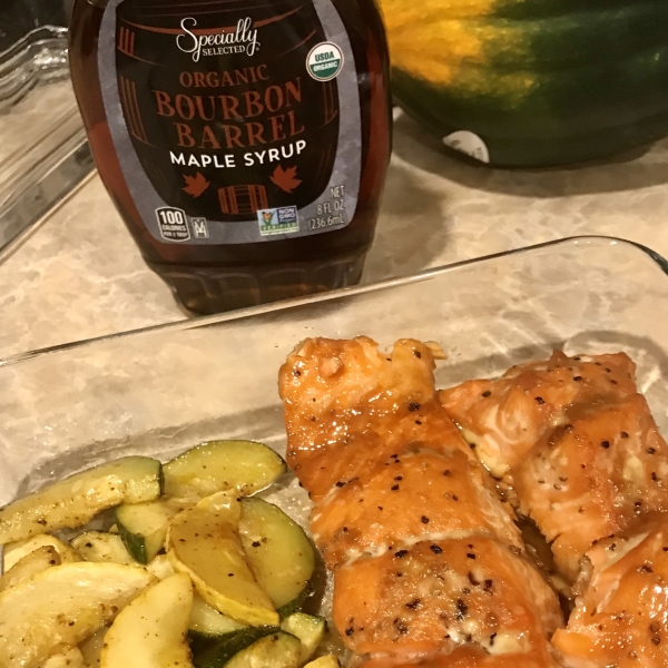 This maple glazed salmon is delicious and very easy to prepare. I love maple syrup in everything and decided to use it in the marinade. My husband totally loved it; he wasn't a salmon fan until now.