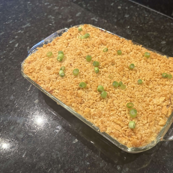 Spoon chicken mixture evenly into an 11x7-inch or 9-inch square baking dish. Sprinkle evenly with mozzarella then top with cracker mixture.