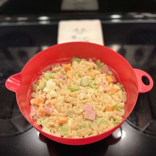 I remember my mom making the best macaroni salad when I was a kid. I wanted to make mine similar to hers, but added a few things I like, such as pimiento, vinegar, and a gherkin for a little tartness to balance out the sweetness. My husband, who doesn't really like pasta salads, loves this!