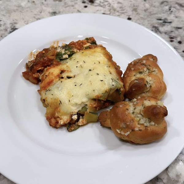 This zucchini lasagna uses thin slices of zucchini instead of noodles; layers of rich meat sauce, spinach and mushrooms, and three cheeses make it irresistible.