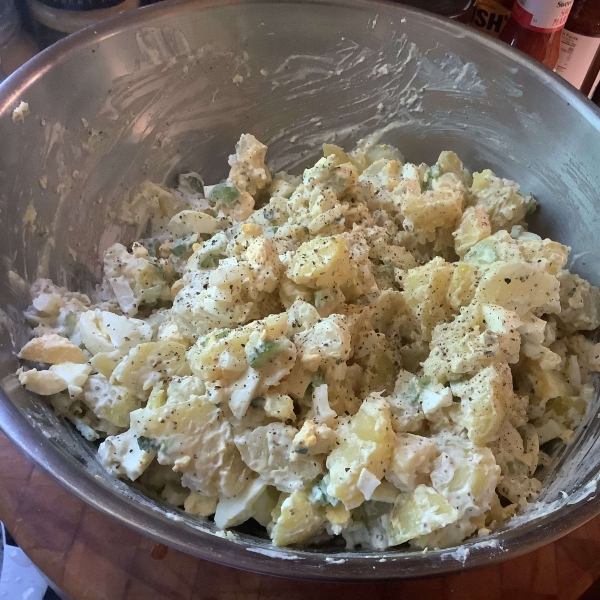 This classic potato salad recipe makes a creamy potato salad with hard-boiled eggs, celery, and relish. Perfect for summer BBQs, picnics, or potlucks.