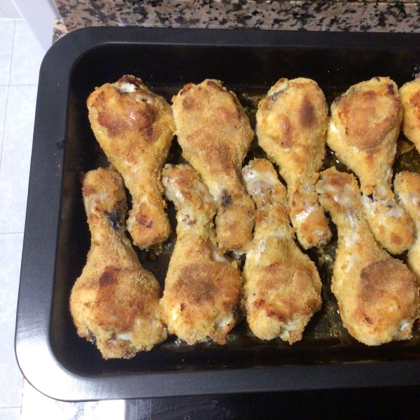This savory oven-fried chicken is easier and less messy to make than frying; the chicken still gets crispy on top but stays tender and juicy inside.