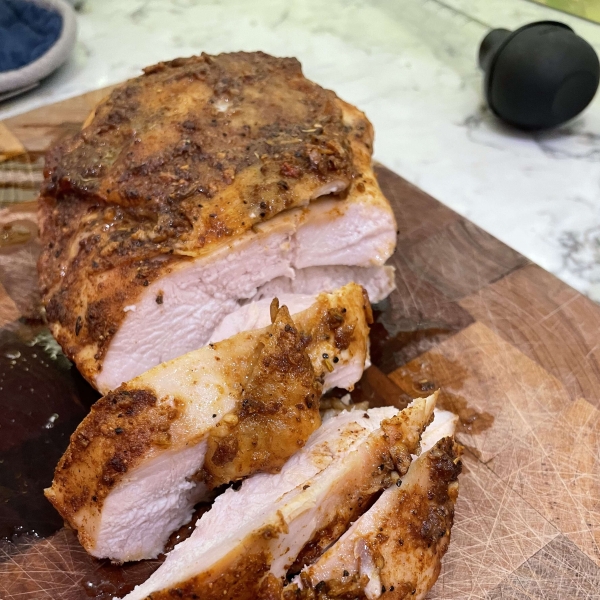 A turkey breast is roasted with a flavorful combination of butter and seasonings and served with homemade pan gravy in this easy, family-friendly recipe.