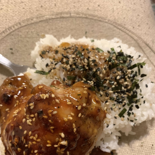 Chicken thighs baked with a sweet, garlicky oyster sauce mixture. The easiest recipe to fix when expecting unexpected company! Best served over sticky white rice.