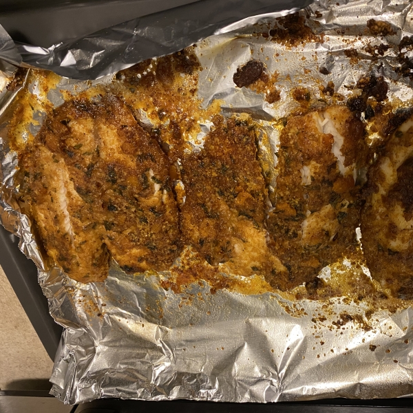 Coat tilapia fillets with olive oil and press into the Parmesan cheese mixture. Arrange coated fillets on the prepared baking sheet.