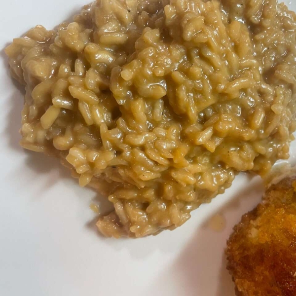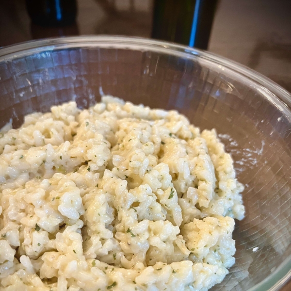 This Parmesan risotto made with Arborio rice, garlic, white wine, and freshly grated Parmesan cheese makes a rich and creamy Italian appetizer or side.