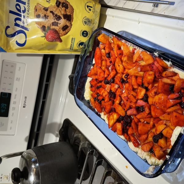In a bowl, mix the flour, baking powder, salt, and 1 cup sugar. Mix in milk just until dry ingredients are evenly moist. Pour evenly into the buttered baking dish. Scoop peach and raspberry mixture over the batter.