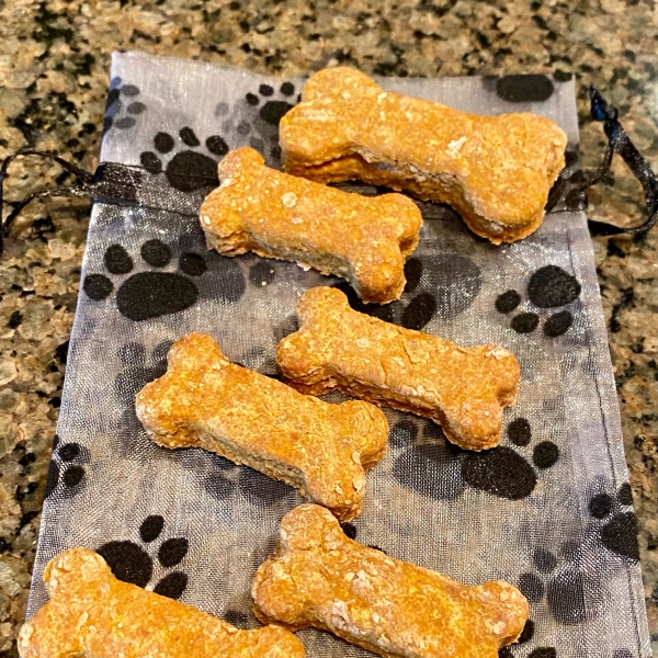 Bake in the preheated oven until dog treats are golden brown and crunchy, about 40 minutes. Let cool before serving to your dog.