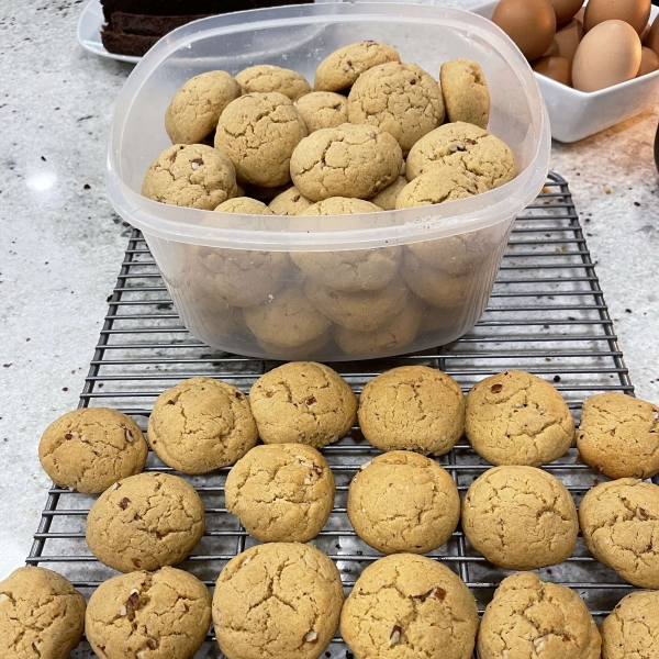 Combine flour, baking soda, cream of tartar, and salt in a medium bowl; stir into egg mixture until dough comes together. Mix in pecans.