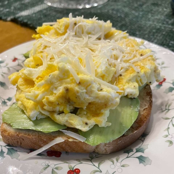 This perfect breakfast recipe is an open-face egg sandwich with avocado, Dijon mustard, and Parmesan cheese. It's a delicious combination of unique favors!