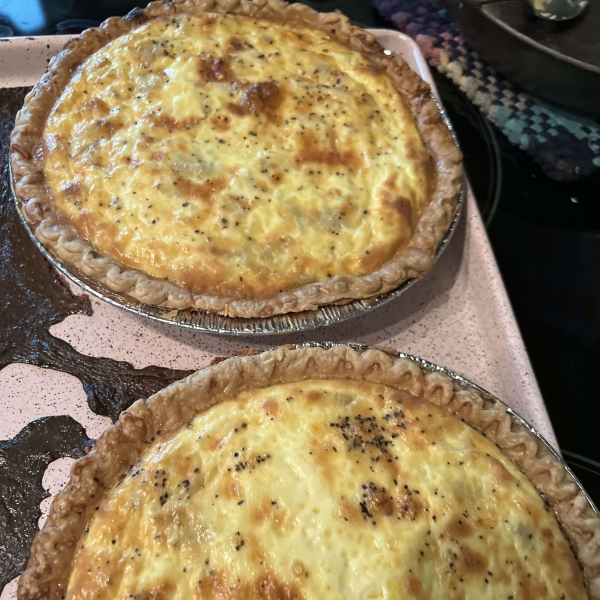 Enjoy this delicious quiche with hash brown potatoes, spinach, and cheese for either breakfast, lunch, or dinner!