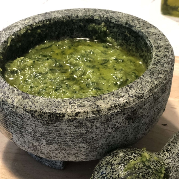 A must-try mortar and pestle pesto recipe. The intensity and balance of big flavors in Chef John's made-by-hand basil pesto is beyond compare.