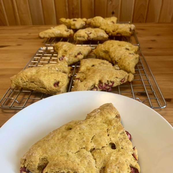 These pumpkin-cranberry scones deliver the goodness of fall in one treat! Baking them will make your home smell so delightful.