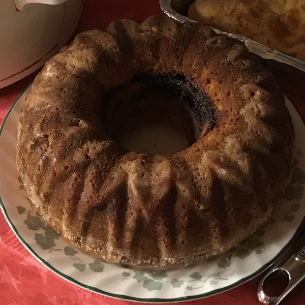 Bake in the preheated oven until a toothpick inserted into the center comes out with a few moist crumbs, 45 to 50 minutes. Cool in the pan for 10 minutes. Gently run a butter knife around the edges and center of the pan to loosen, then invert cake onto a wire rack to cool completely.