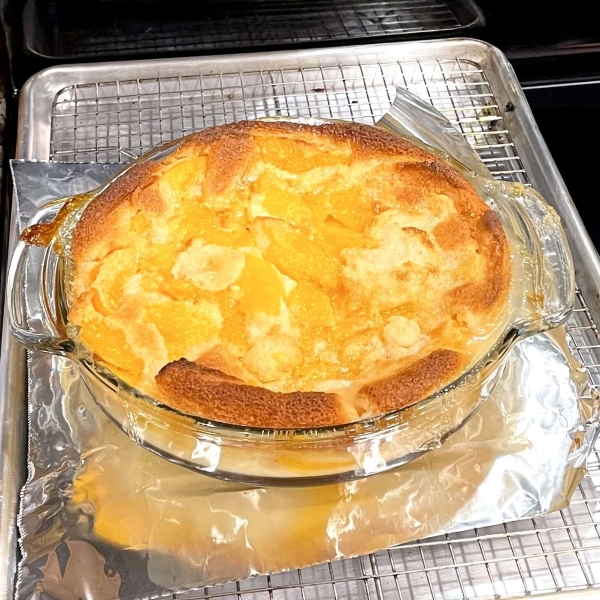 Carefully pour peaches and syrup into the skillet. Use a spatula to spread peaches evenly around the pan.
