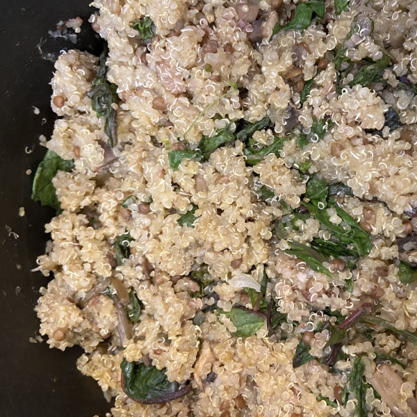This simple vegan dish combines the distinctive, nutty flavor of quinoa with chard, mushrooms, and lentils. Try using rainbow chard for a colorful effect!