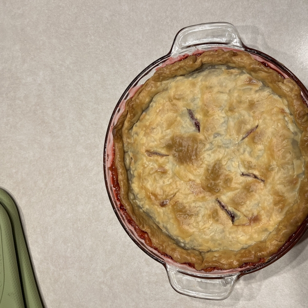 Cover filling with remaining pie crust; flute edges to seal. Brush cream on top, then cut several slits to allow steam to escape.