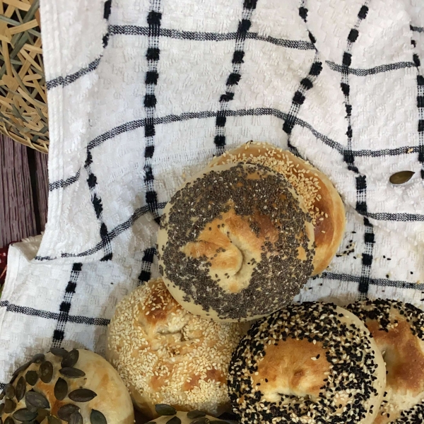 A bagel recipe for that authentic bagel flavor and texture. Top them with coarse salt, sesame seeds, poppy seeds, onion flakes, or everything!