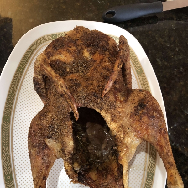This roasted duck is coated with a simple, flavorful spice rub, then baked in the oven and basted with butter until tender, juicy, and flavorful.
