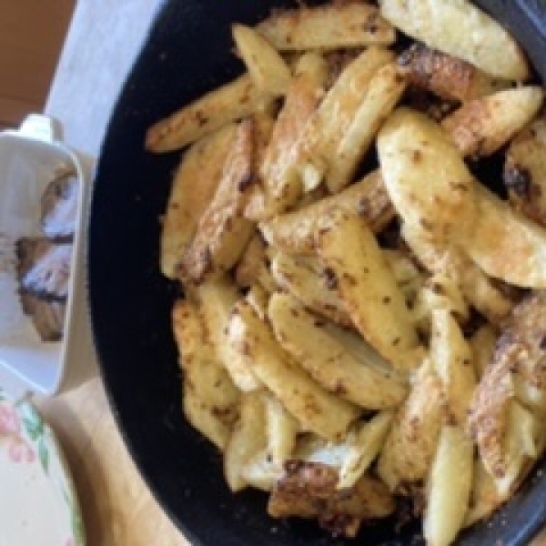 Heat a cast-iron skillet over medium-high heat. Add butter and heat until melted. Add potatoes; cook and toss until evenly coated with butter, about 2 minutes. Move the skillet to the preheated oven.