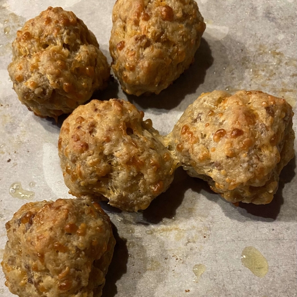These sausage balls are made with ground pork sausage, cream cheese, and Cheddar-Monterey Jack cheese--try them over pasta!