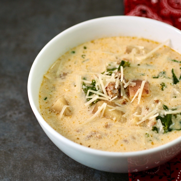 This sausage and kale soup combines pork sausage, nutritious kale, and potatoes to give a hearty, rich, bold flavor to a creamy Italian-inspired soup.
