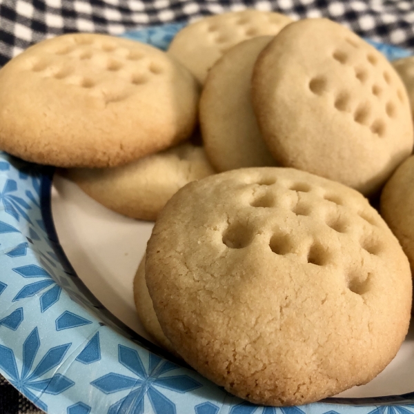 Light and very buttery, like traditional Walkers shortbread. The recipe does not make a large batch, but it's simple enough to make a few batches. The recipe does not double well.