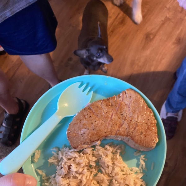 Gently place seasoned tuna in the skillet and cook to desired doneness, anywhere from 30 seconds to 1 1/2 minutes per side.