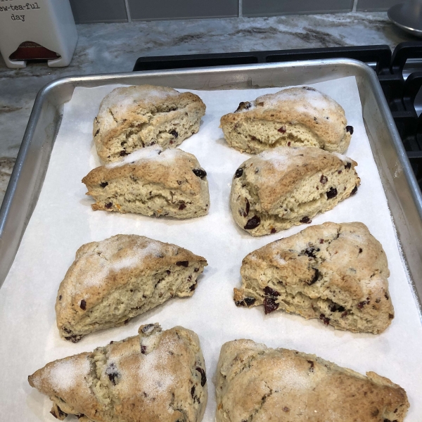 Bake scones in the preheated oven until golden, about 15 to 17 minutes. Cool for 5 minutes; serve warm or at room temperature.
