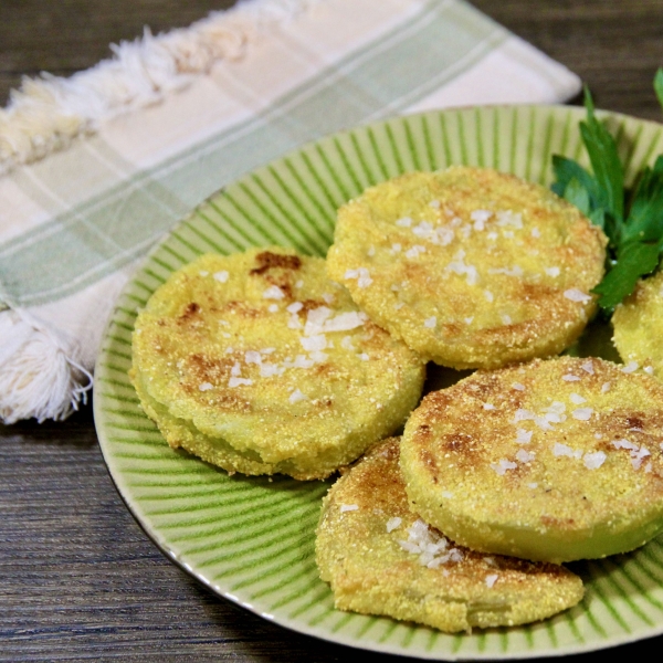 A traditional use for those unripened, end-of-harvest tomatoes: these green tomatoes are dipped in egg, coated in a mixture of cornmeal and flour, and fried to perfection.