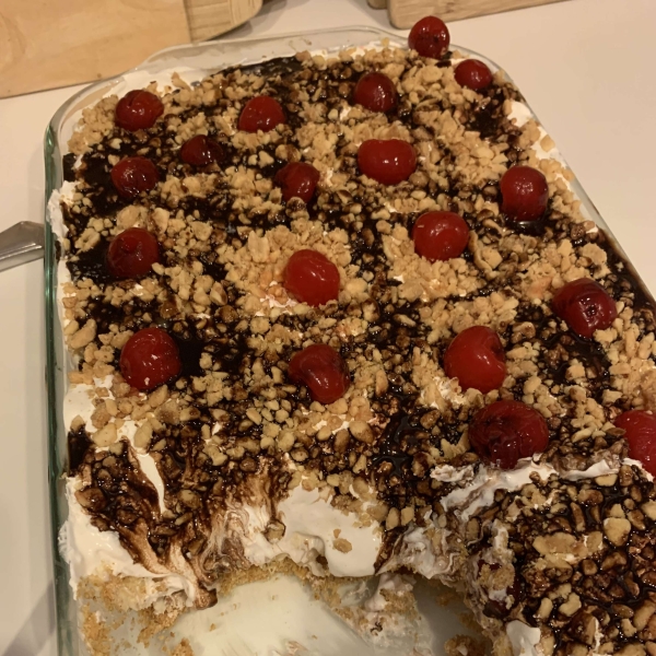 Top with cherries and chopped nuts. Refrigerate for at least 1 hour and serve chilled.