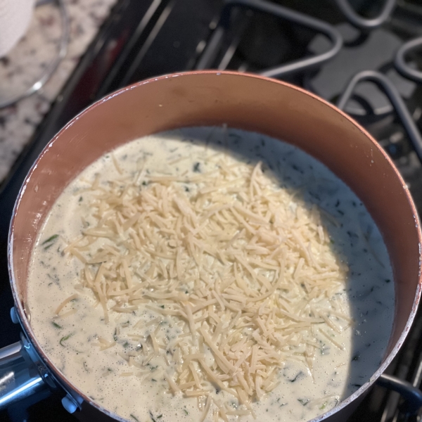 This spinach alfredo sauce recipe tastes better than the version you get at Olive Garden! Top with grilled chicken on fettuccine pasta for a complete meal or use as a dip for bread sticks. When I make this dish, everyone raves over it. Add more spinach if you're a spinach lover or leave it out if you're not a fan. I like adding lots of garlic.