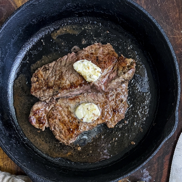 Just a touch of truffle oil and shaved truffle adds sophisticated taste to these oven-cooked New York strip steaks topped with homemade truffle butter.