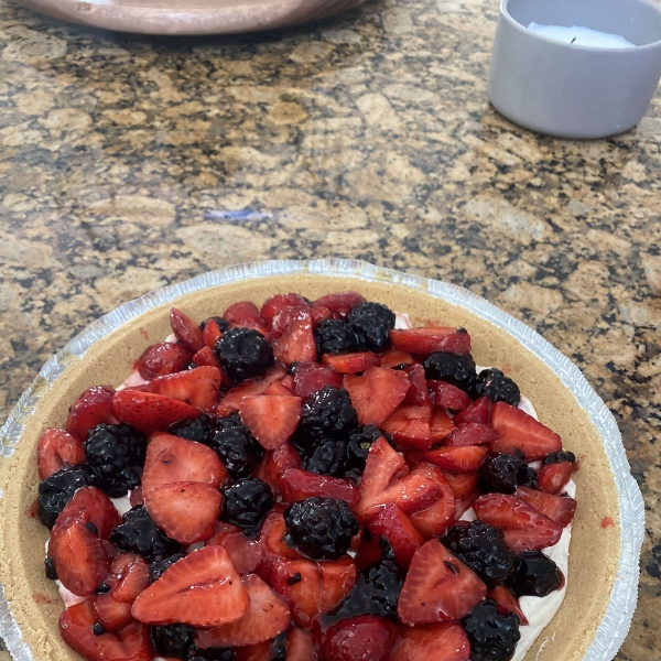 Beat cream in a separate bowl with an electric mixer just until it begins to thicken; add cream cheese mixture and continue beating until thick. Pour cream mixture into baked pie crust; top with strawberry mixture. Chill at least 1 hour before serving.