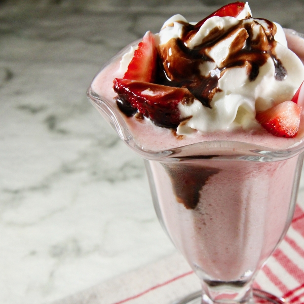 This homemade strawberry milkshake makes for a creamy, sweet treat to enjoy on those hot summer days!