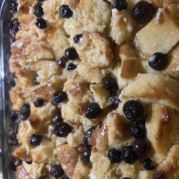 Fresh blueberries, tangy sourdough bread, and a creamy custard make this blueberry bread pudding a definite crowd-pleaser! It's got the perfect amount of sweetness, the perfect level of richness, and the perfect ratio between soft, custardy bread on the inside, and crispy, brown, buttery bread on the outside. Serve with whipped cream or vanilla ice cream.