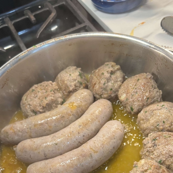 Heat olive oil in a large skillet; add meatballs in batches and cook until browned on all sides, slightly crisp, and cooked through, about 10 to 15 minutes. Drain on paper towels.