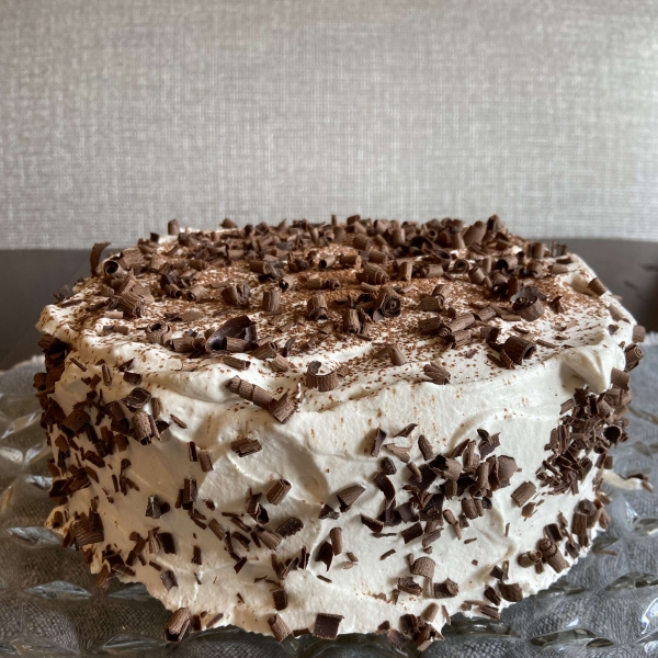 This tiramisu cake has 3 layers of coffee-flavored sponge with a coffee liqueur filling and frosting for a decadent treat based on the classic Italian dessert.