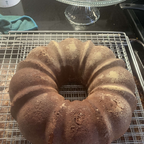 Cool cake thoroughly in the pan for at least 1 1/2 hours before inverting it onto a plate. Sprinkle powdered sugar on top if desired.