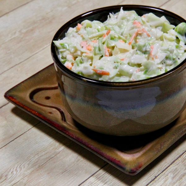 Fold coleslaw mix into dressing until well combined. Cover and refrigerate for at least 1 hour before serving.
