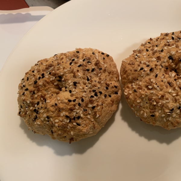 Transfer dough to a lightly floured work surface, and knead until smooth, 5 to 7 minutes. Divide the dough evenly into 4 balls, rolling and stretching each into 3/4-inch thick ropes that are about 8- to 9-inches long. Connect both ends, pinching and sealing to form a bagel. Brush with egg white, and sprinkle with bagel seasoning.