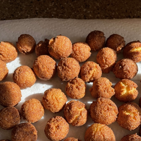 Drop batter by rounded teaspoonfuls, 4 at a time, into hot oil and fry until golden brown, 1 to 2 minutes per side. Transfer to a paper towel-lined plate to drain. Serve hot.
