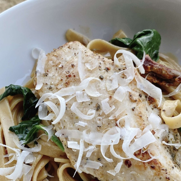 This chicken Florentine pasta dish is quick and easy and both perfect for a weeknight meal as well as for guests.