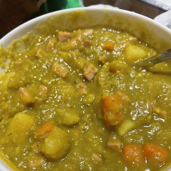 A hearty French-style dried split pea soup with potatoes, carrots, and optional ham doesn't need any soaking, so it's good for a weeknight supper. Serve with crusty bread.