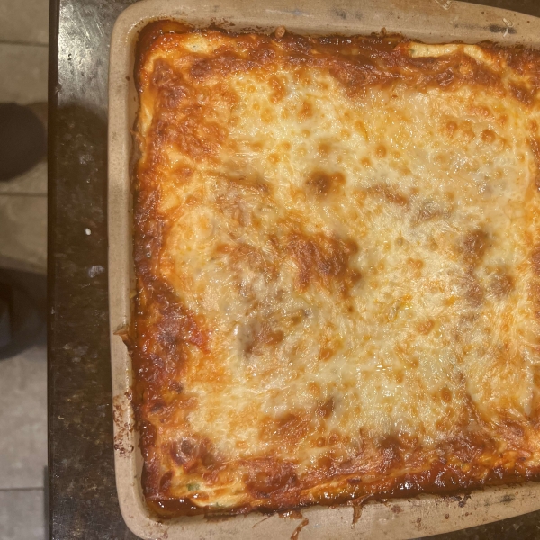 Bake in the preheated oven for 25 minutes. Remove the foil and bake for an additional 25 minutes. Rest lasagna for 15 minutes before serving.