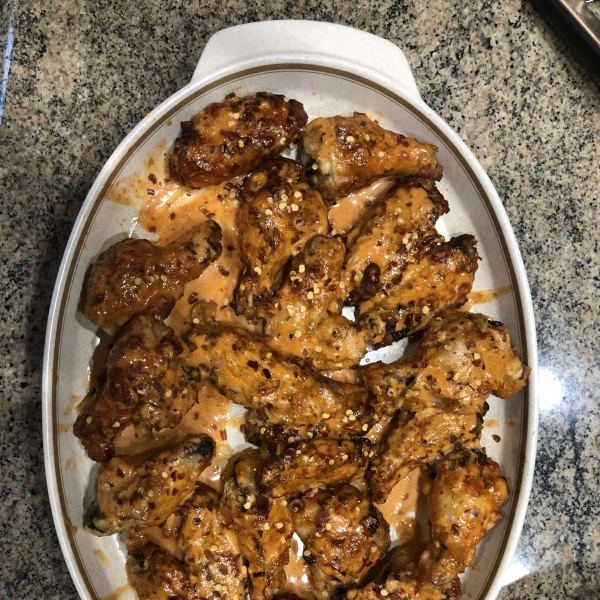 Transfer fried chicken to another large bowl and pour reserved sauce over the top. Sprinkle with green onions and toss to coat. Serve hot.