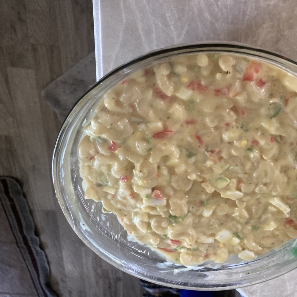 A colorful and flavorful macaroni salad made with hard cooked eggs, bell pepper and celery in a creamy dressing. Best macaroni salad I have ever had. I always get many requests for recipe. Enjoy!